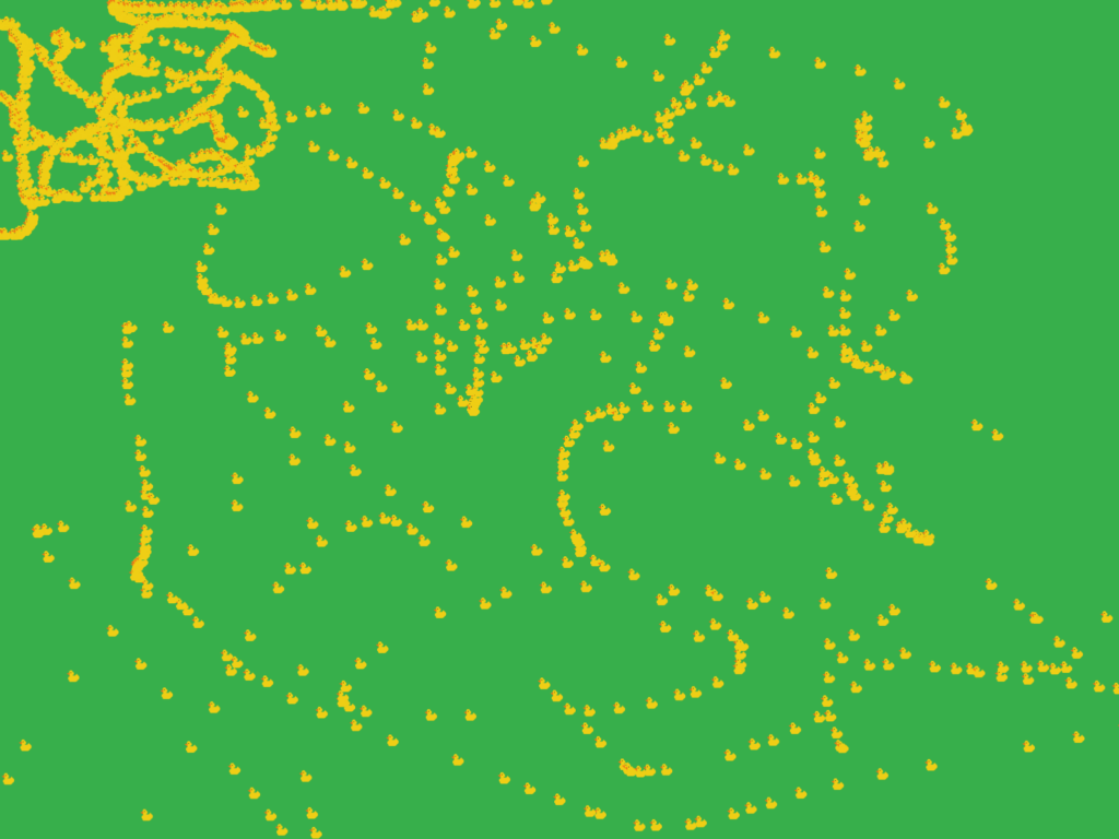 2. Um exército de patos que acompanha o cursor do usuário, como se fossem partículas que respondem ao movimento do mouse.